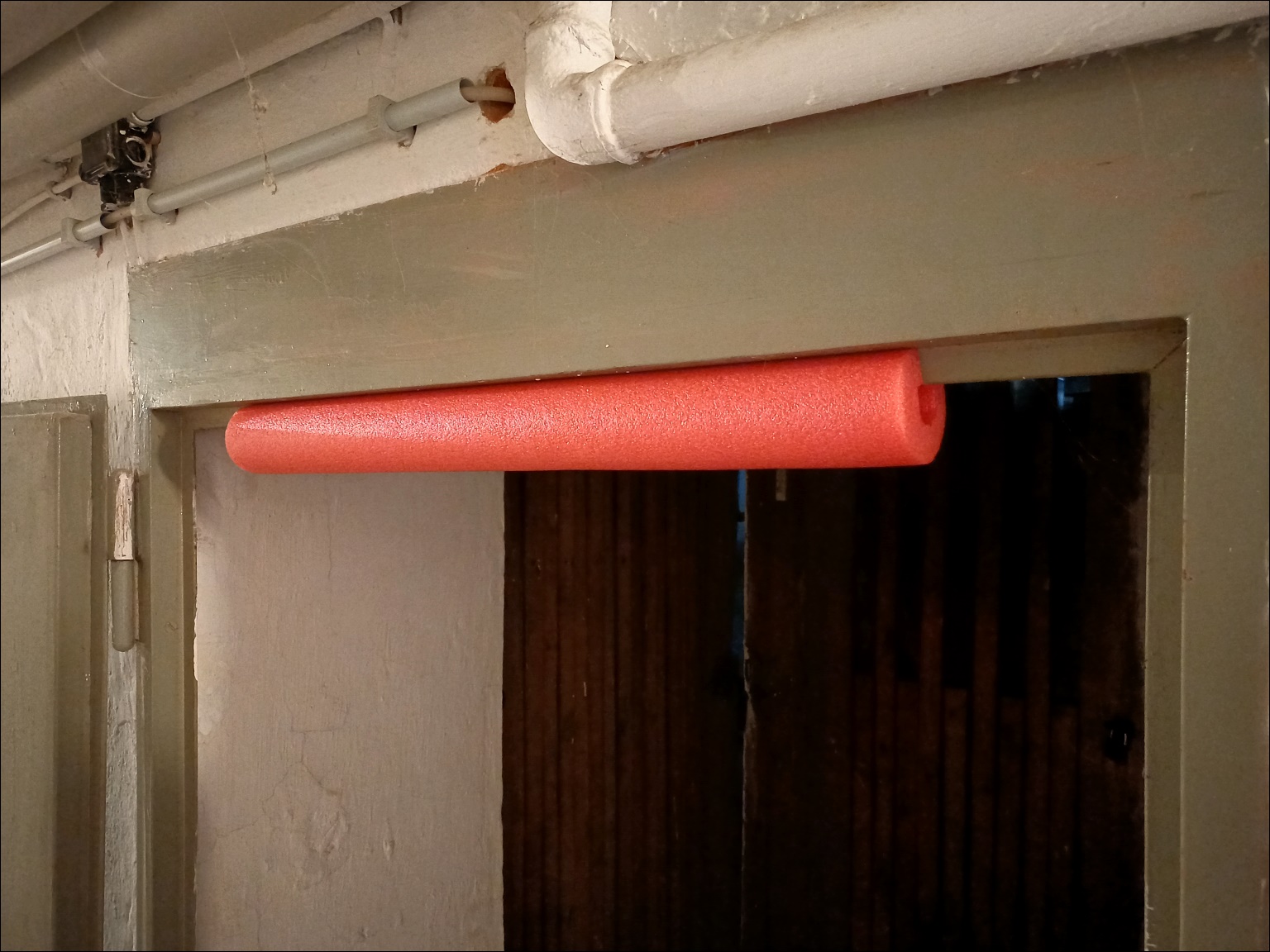 Und das wars dann auch schon: Runter in den Keller damit und auf das Zargenblech aufgesteckt, halten die draufgeklemmten Schaumstoffrohre dank ihrer Eigenspannung ganz von selbst und das auch ziemlich fest.
