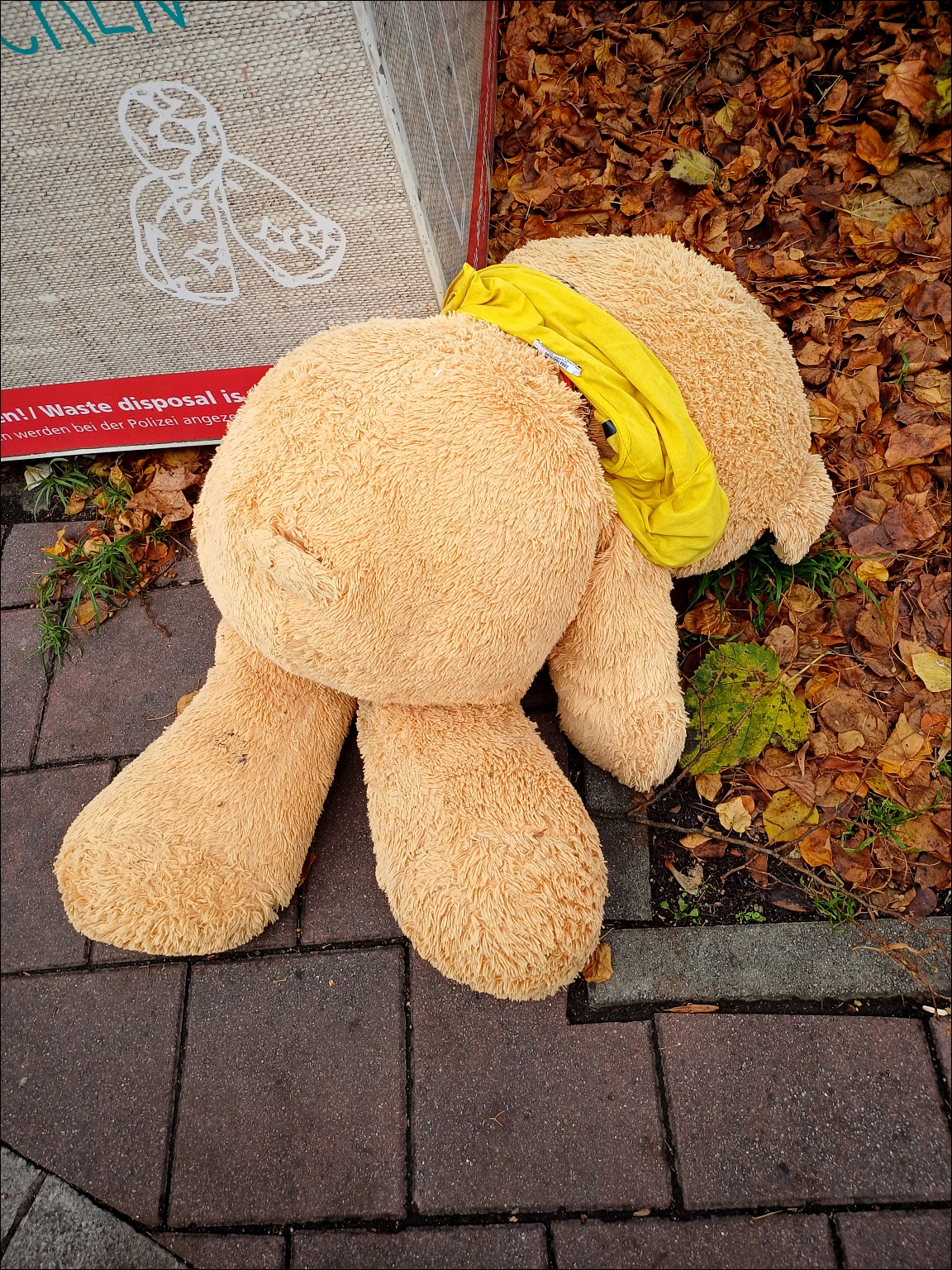 ![]() Unwürdiges Ende: Am Altkleider-Container abgeworfenes Plüschtier |
